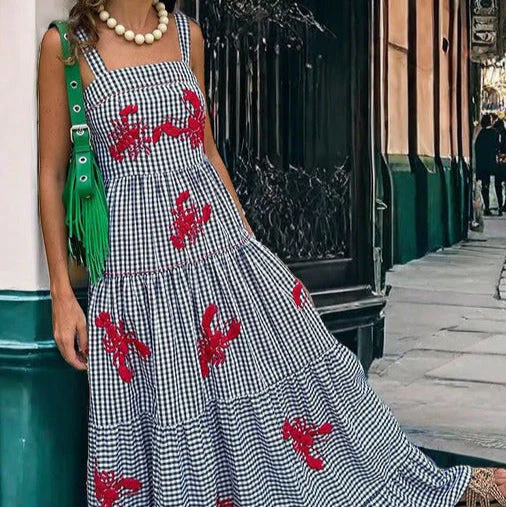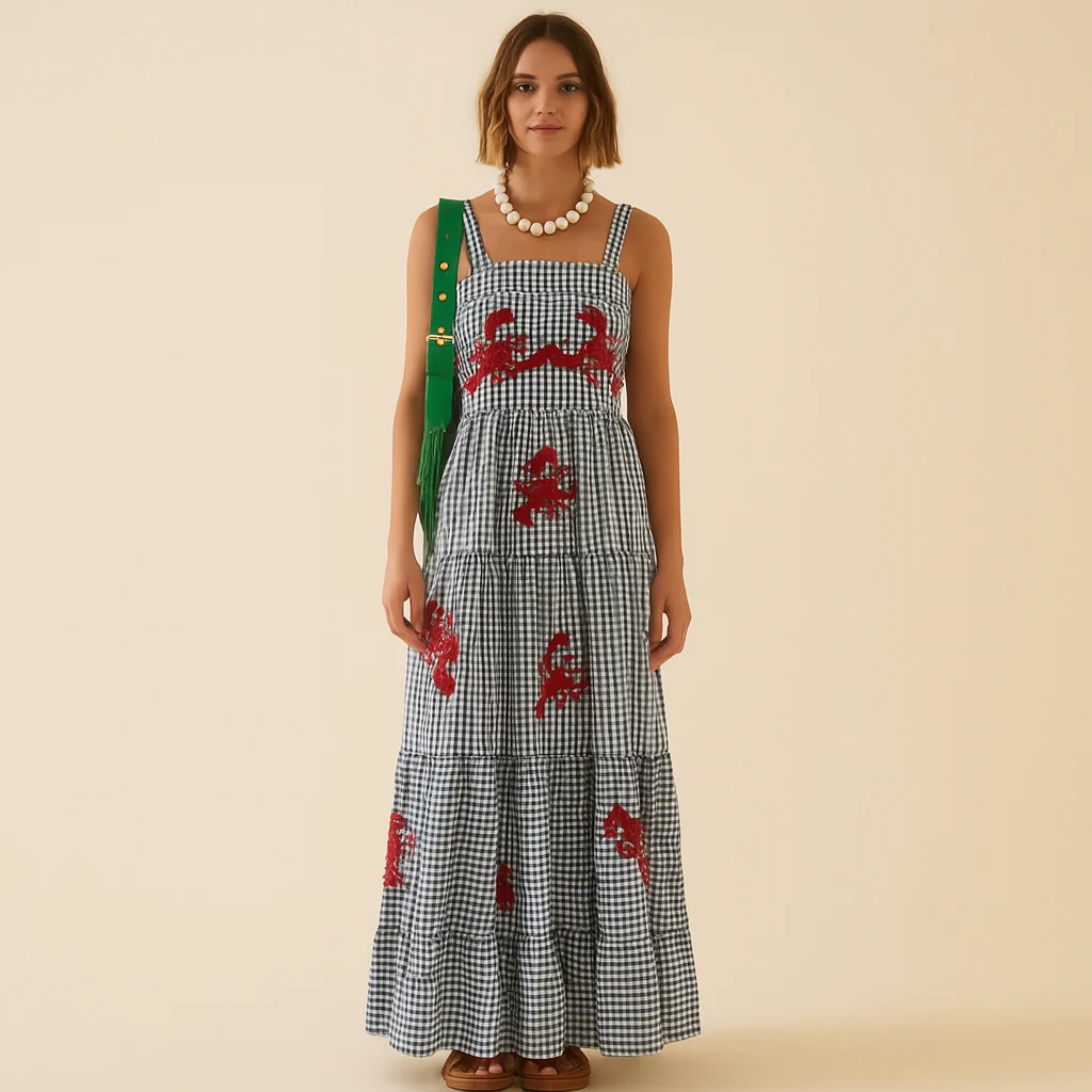 Cette robe longue au motif vichy revisité affiche un charme à la fois bohème et contemporain. Sa coupe ample et fluide offre un confort absolu, tandis que les broderies rouges ajoutent une touche d’originalité et de couleur. Une pièce parfaite pour flâner en ville ou profiter d’une escapade estivale.