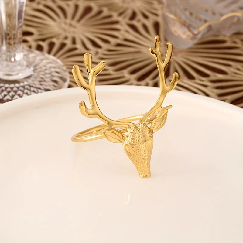 Le Rond Serviette Noel en alliage de zinc est l’accessoire parfait pour sublimer votre décoration de Noël intérieur. Sa tête de cerf et sa finition dorée créent une ambiance festive.