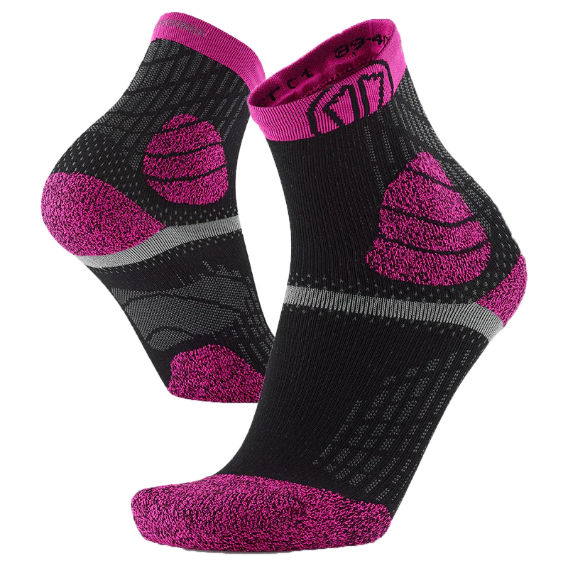 Les Trail Protect Socks de Sidas apportent un niveau de protection performant aux coureurs de trail. Dotées de zones renforcées au talon, à la cheville et à l’avant-pied, associées à une bande de grip sous le pied, elles réduisent les frictions et stabilisent le pied dans la chaussure. Leurs zones mesh respirantes sous la voûte plantaire assurent une excellente ventilation. Cette version Rose/Noir est spécialement pensée pour l’ultra-trail, offrant confort et sécurité sur terrains exigeants.