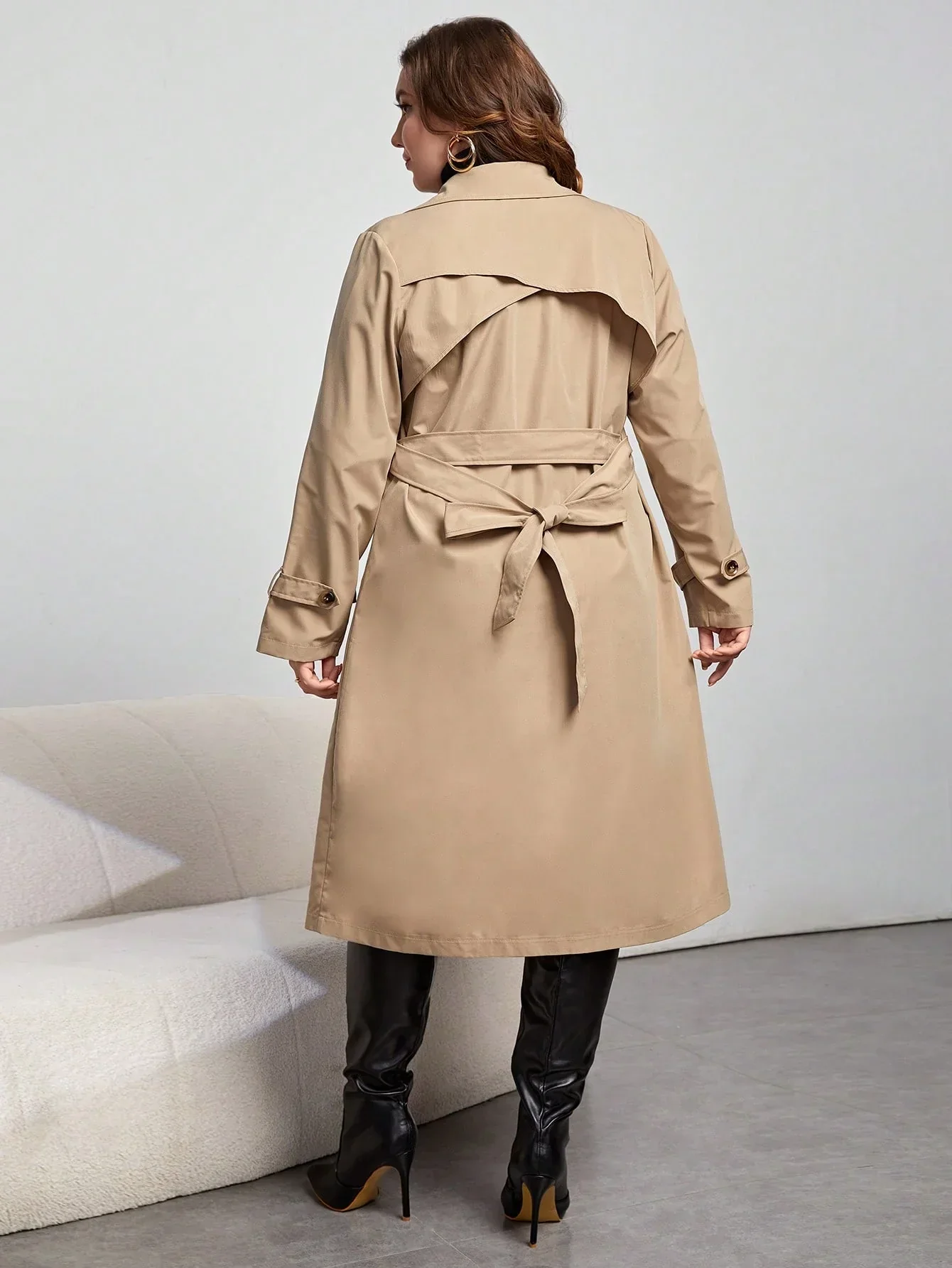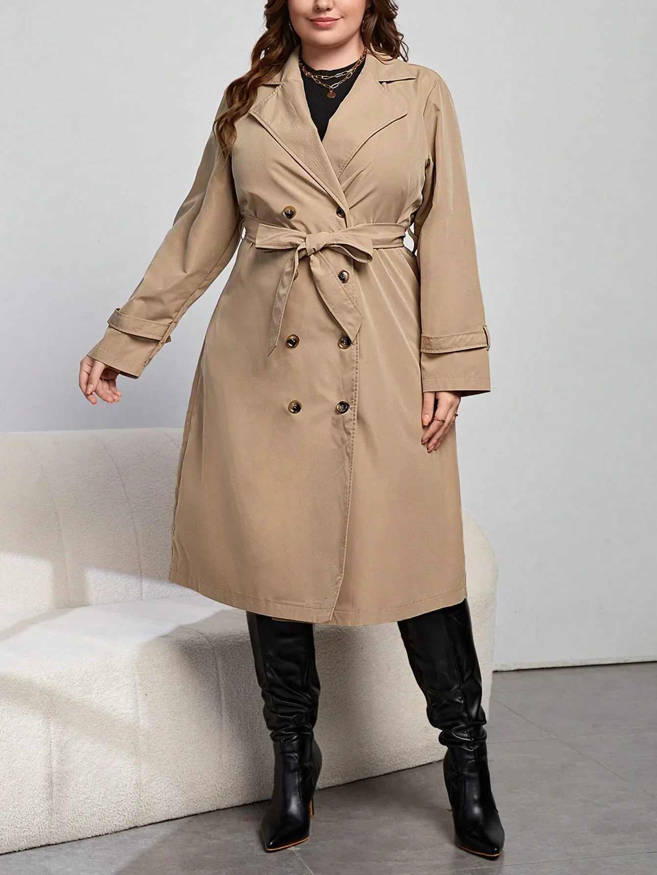 Trench-coat grande taille deux pièces ceinturé beige minimaliste