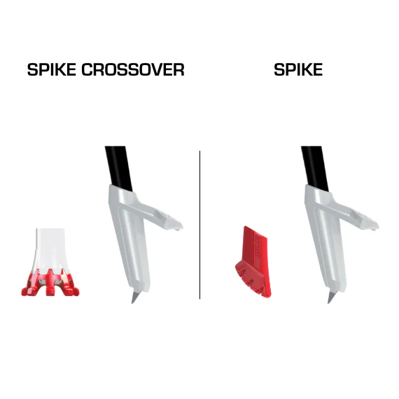 – Spike Crossover livrés avec : Embouts Crossovers : Le Crossover s’adapte durant toute la durée de la marche aux différentes aspérités quel que soit le terrain rencontré pour une accroche et un appui extraordinaires. Les 8 crampons se déforment au contact du sol pour adhérer, accrocher et coller au plus près du terrain. Il permet également de ne plus abimer les chemins, de ne plus avoir de bruit de pointe et d’éviter tout risque de blessure.