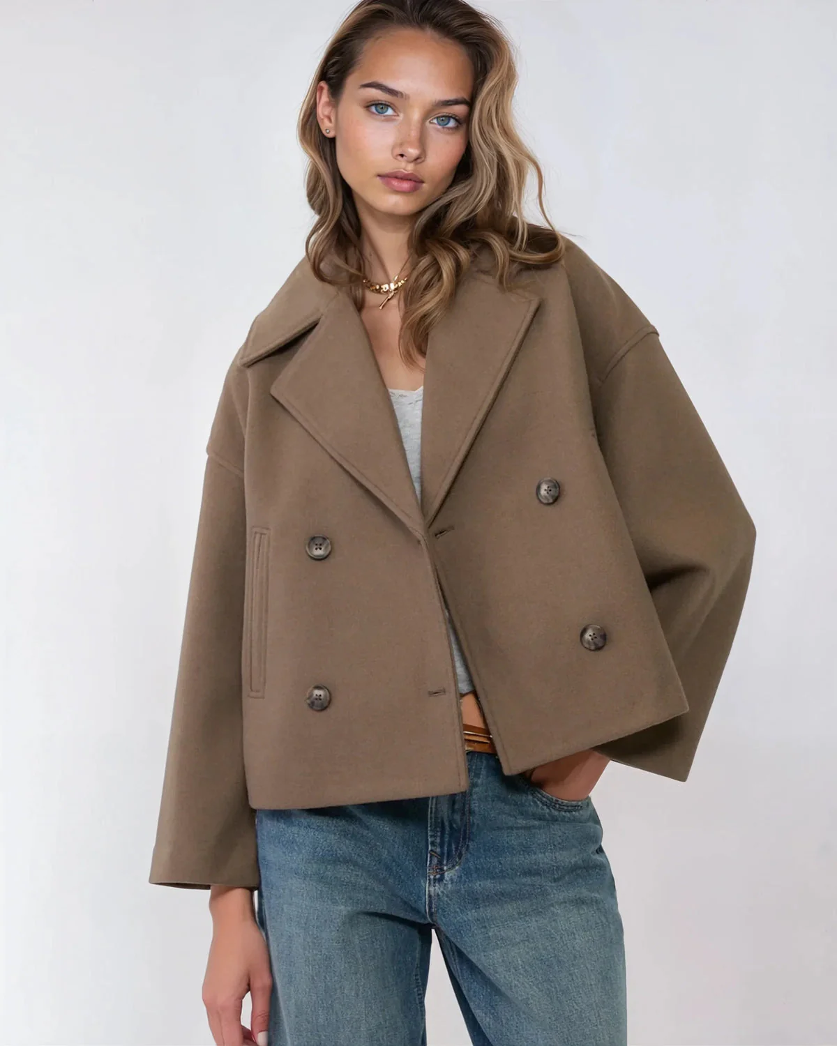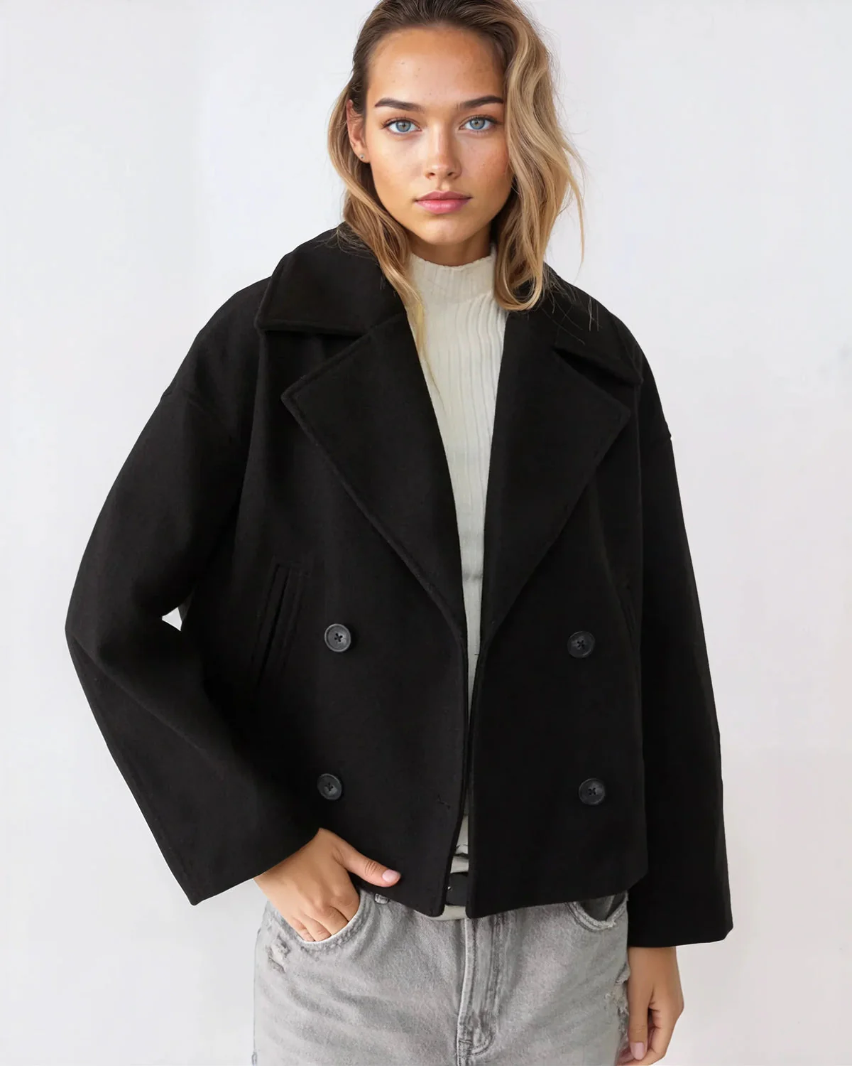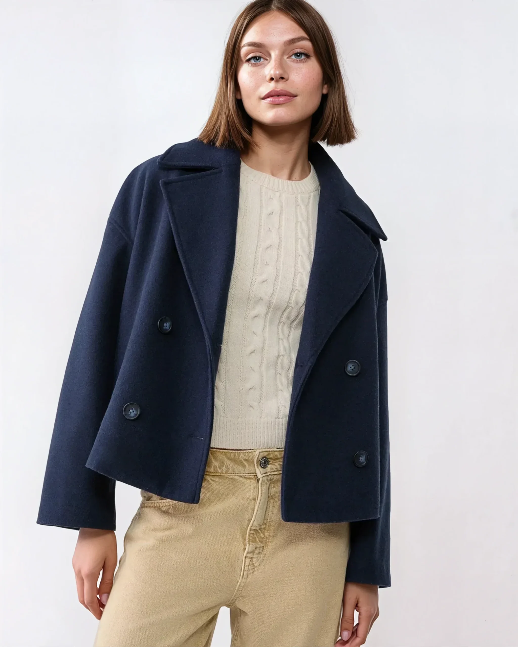 - Fermeture croisée et larges revers pour une touche classique raffinée