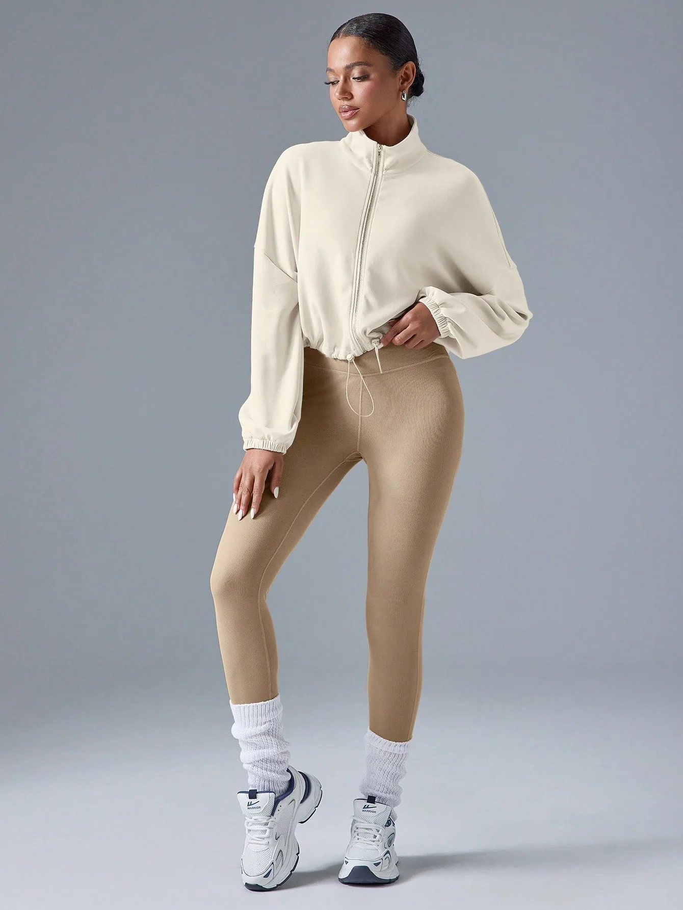 Composition: 91 % polyester, 9 % élasthanne Conception: Silhouette : courte, ample Encolure : col montant Coupe : longueur courte Fermeture : fermeture éclair sur le devant Texture : tissu tricoté ; uni Détails : détail du cordon de serrage Poches : aucune Doublure : non doublée Couleur : abricot Épaisseur: Lumière Occasion: décontracté de […]