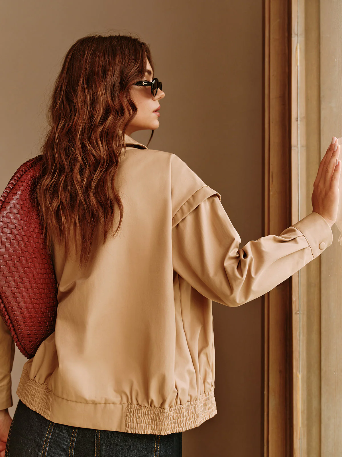 Cette veste beige au design minimaliste offre une coupe décontractée mais soignée, parfaite pour compléter toutes vos tenues. Confortable et intemporelle, elle deviendra rapidement un incontournable de votre garde-robe.