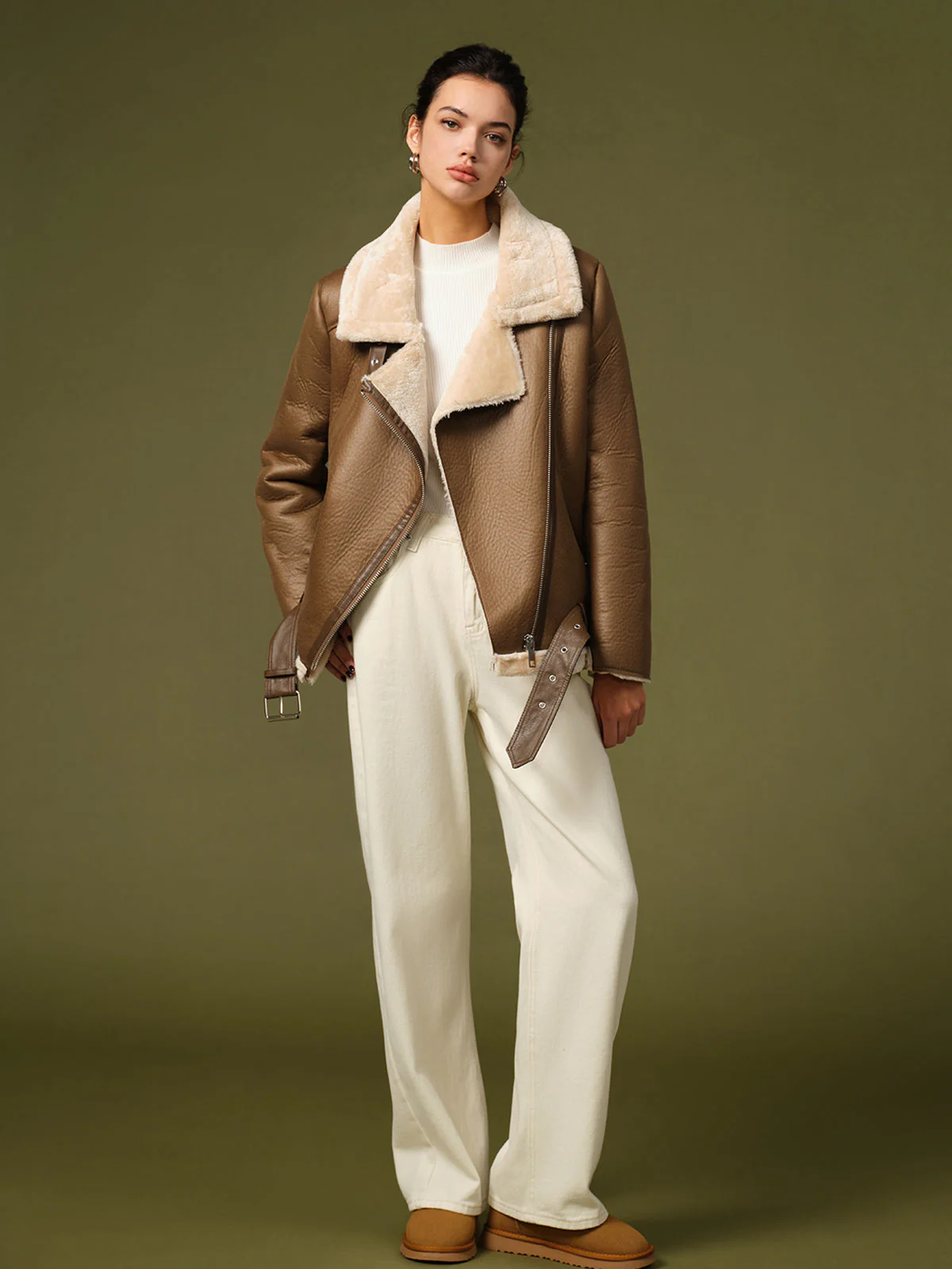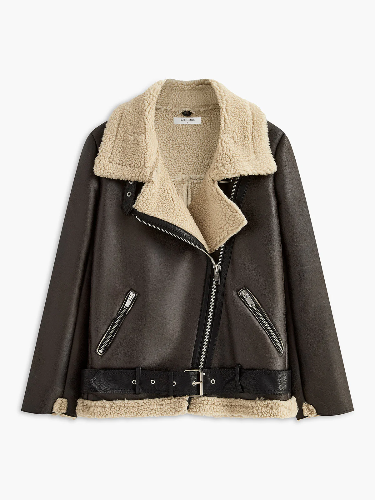 Cette veste en cuir synthétique avec col en fausse fourrure allie chaleur et sophistication. Son design unique et ses finitions luxueuses en font une pièce incontournable de votre garde-robe.