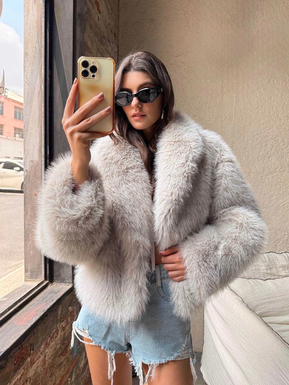 Cette veste en fausse fourrure complètera vos looks cet hiver.
