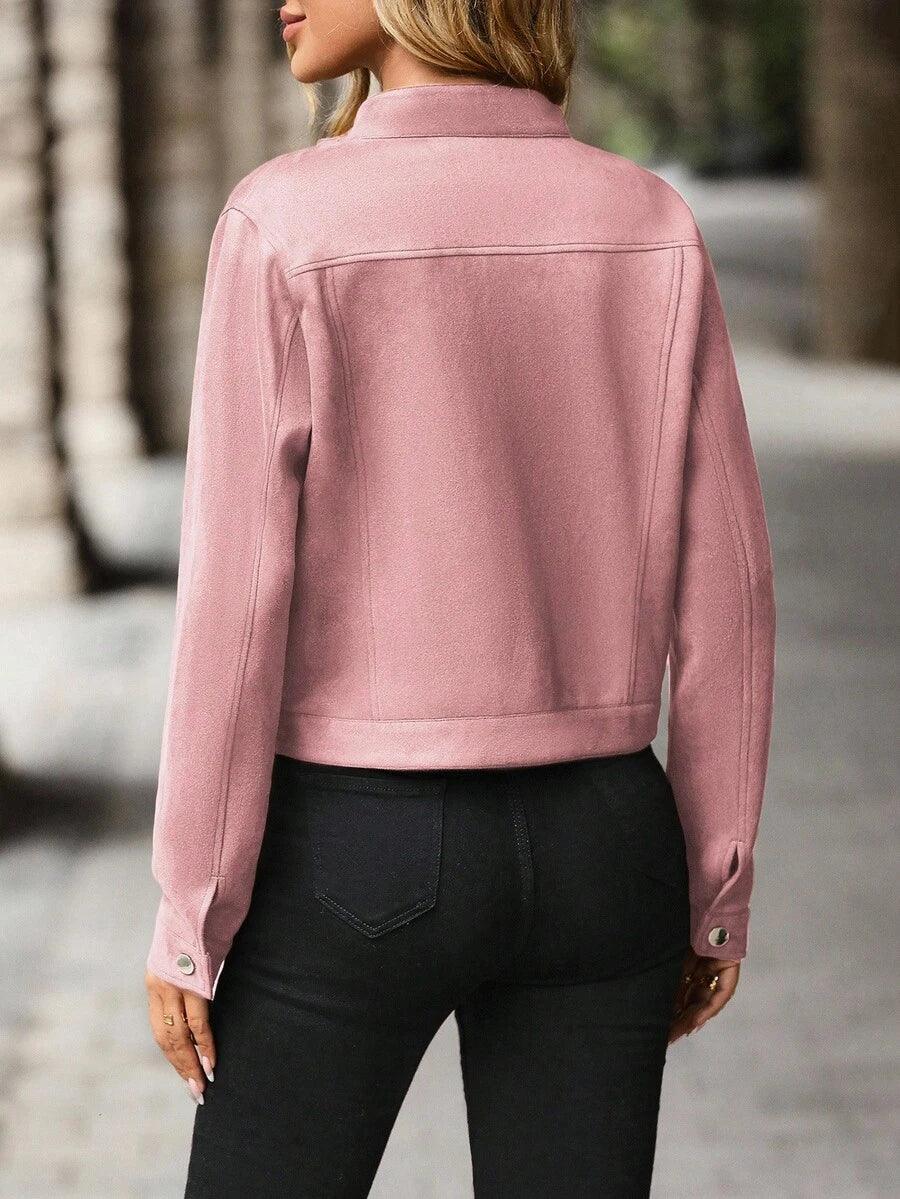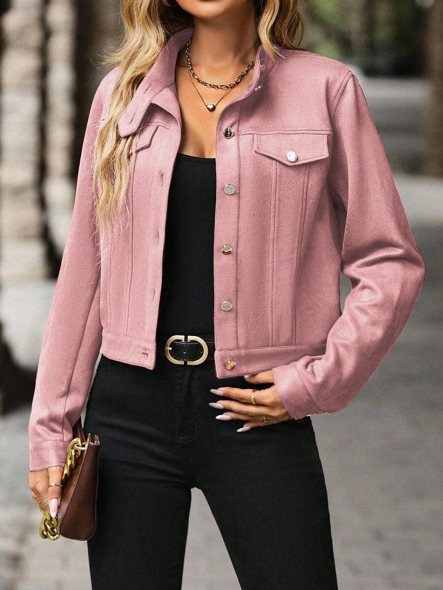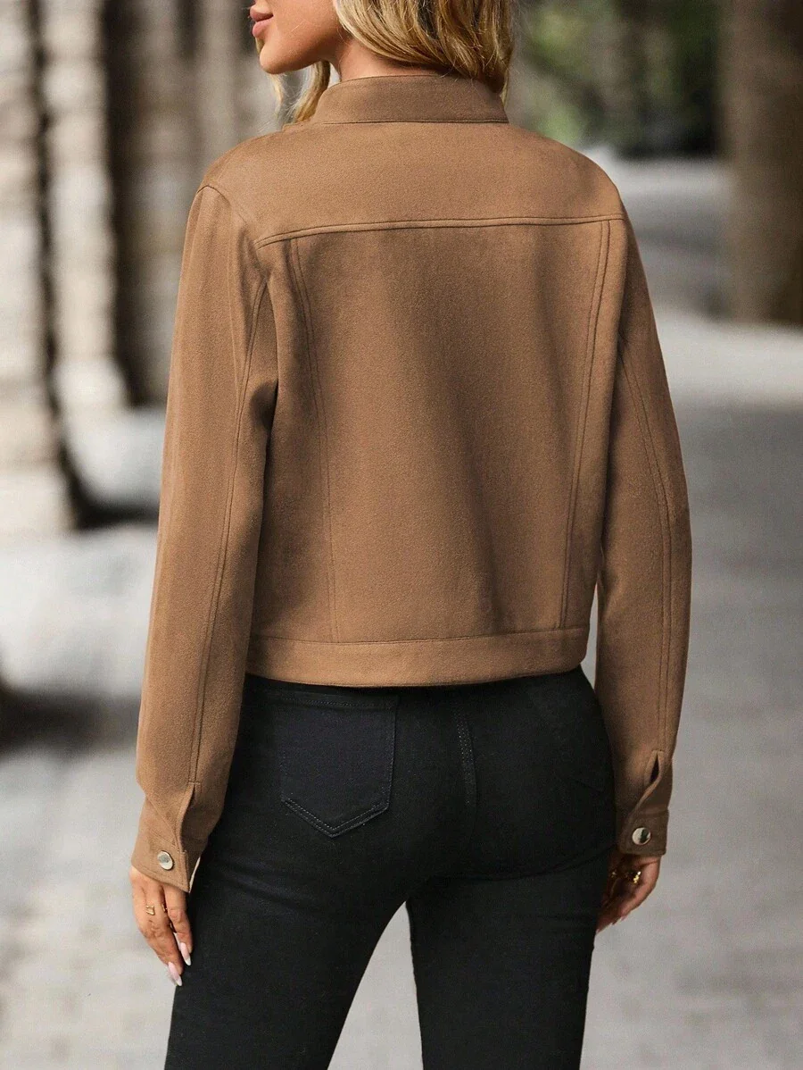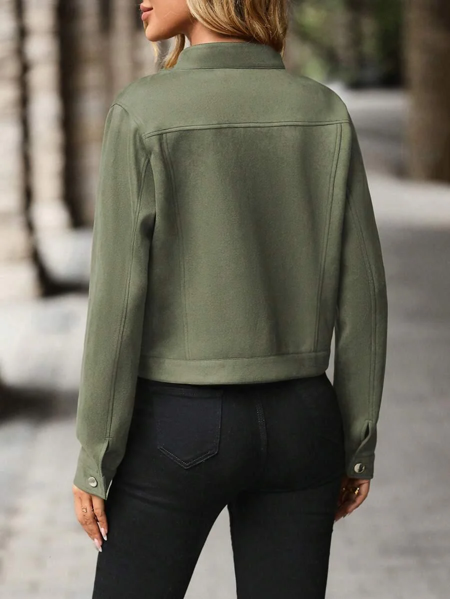 Veste en laine mélangée, longueur courte, col simple boutonnage