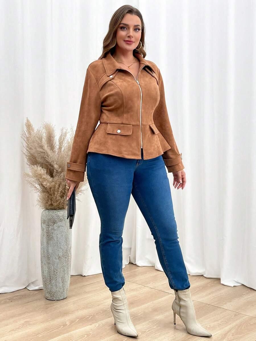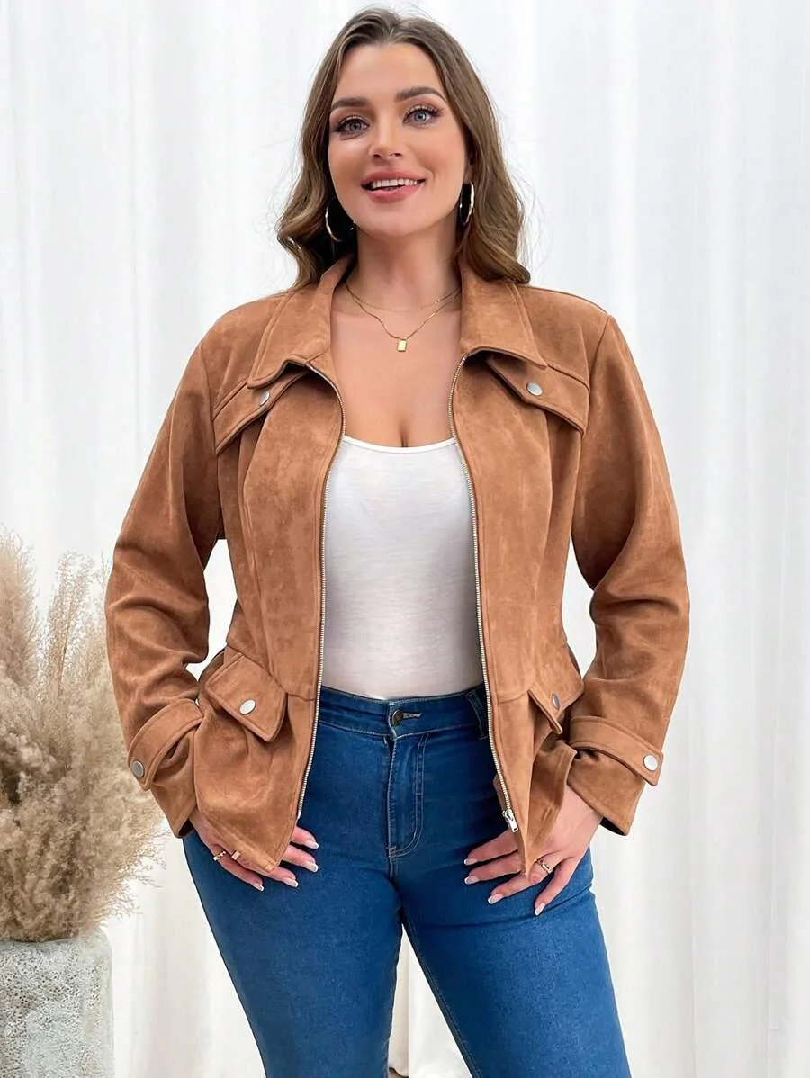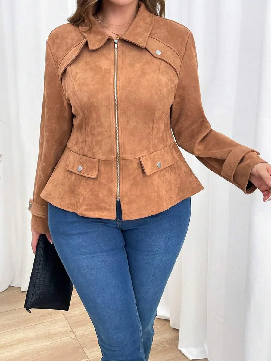 Veste marron rouille grande taille avec fermeture éclair sur le devant et coupe décontractée