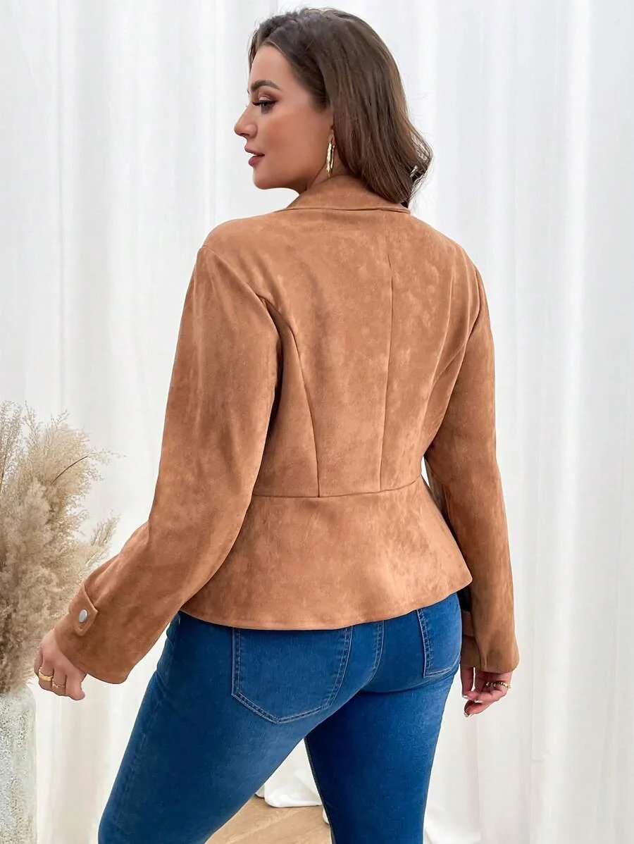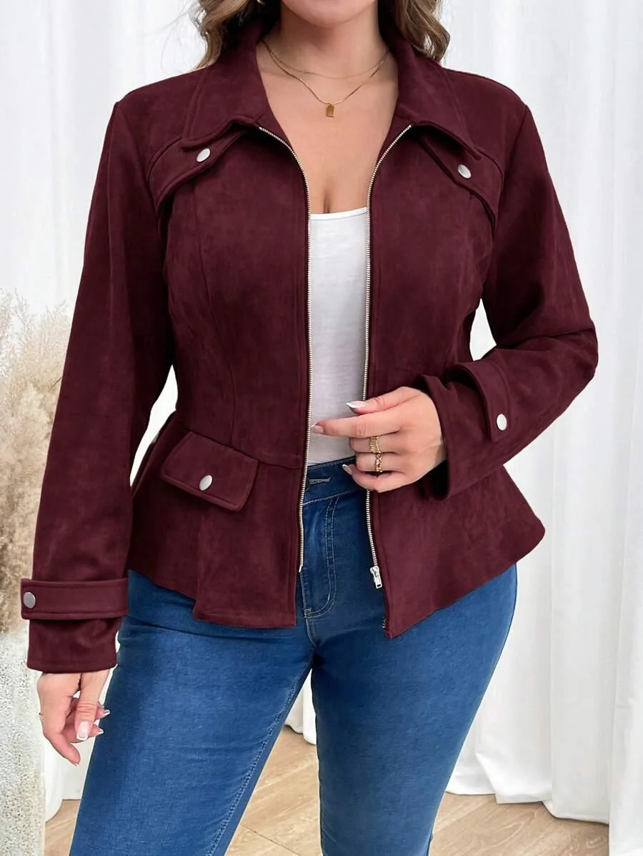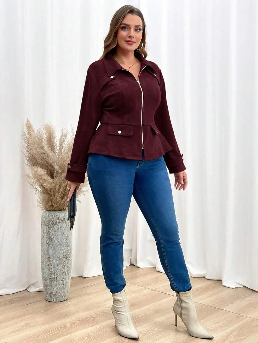 Veste marron rouille grande taille avec fermeture éclair sur le devant et coupe décontractée