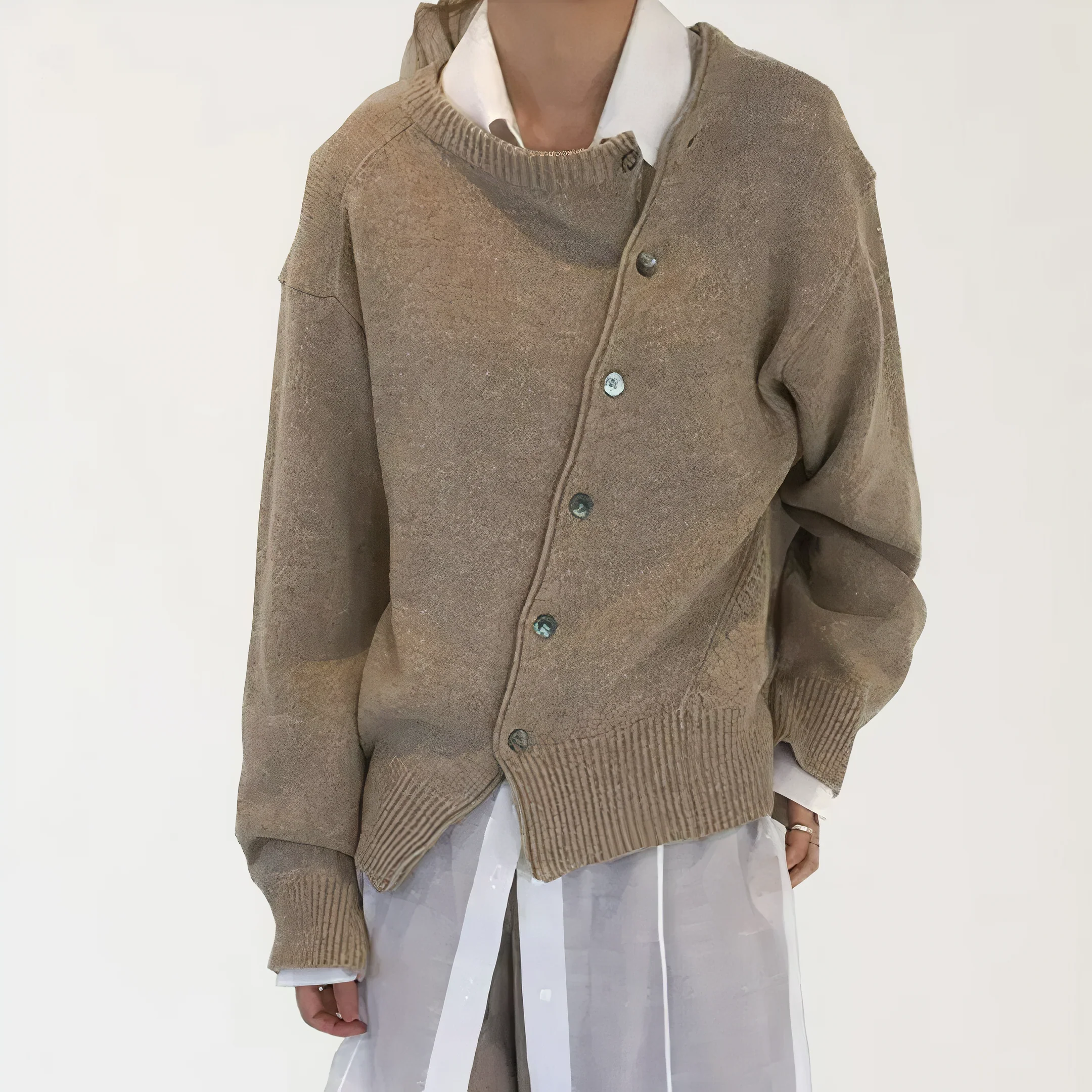 L’effet portefeuille crée une silhouette élégante, tandis que le détail asymétrique unique des boutons ajoute une touche de fantaisie à l’ensemble. Que vous vous habilliez pour une occasion spéciale ou que vous cherchiez à ajouter une touche de sophistication à votre tenue de tous les jours, cette veste portefeuille en cachemire est un véritable accroche-regard.